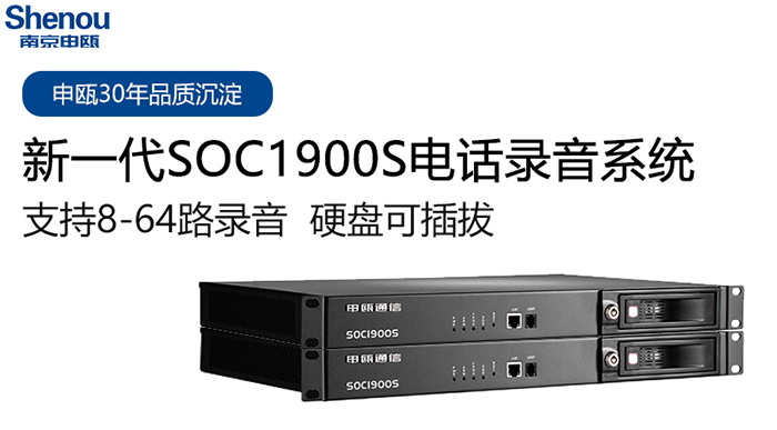 申甌SOC1900S和SOC1600S電話錄音系統(tǒng)新品上市 申甌SOC1900S和SOC1600S系列產(chǎn)品是申甌公司研發(fā)的新一代錄音系統(tǒng),硬盤可自主更換,采用國際語音壓縮技術(shù),支持WAV和MP3文件格式,支持2、4、8、10倍等壓縮,每G...